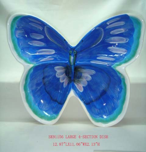 The Detailed Description of BUTTERFLY 4 SECTIONAL LARGE TURQUISE SERVING DISH