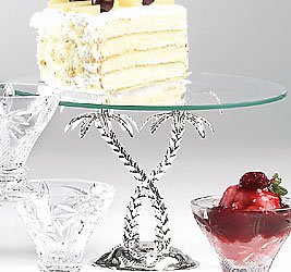 PALM TREE CAKE PLATE STAND WITH GLASS TOP Put your confectionary creations on display for all to see, giving it the elevated position it deserves. The palm tree base is a classic design that can be used and enjoyed at many events. Also consider other items in the same series to match.