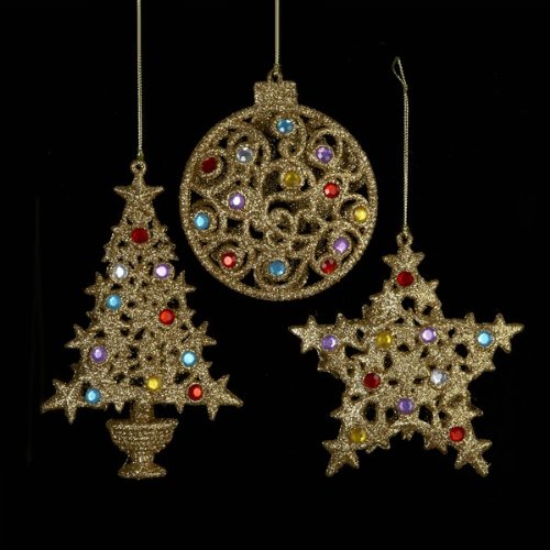 4.7-6.3"STAR/TREE/DISC W/MULTI COLOR SOTNE ORNAMENT SET OF 3