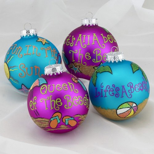 80MM BEACH DESIGN GLASS BALLS 4PC.