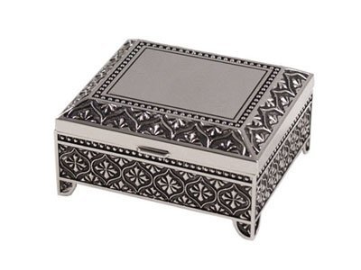 The Detailed Description of SQUARE JEWELRY BOX, NICKEL PLATED.Features