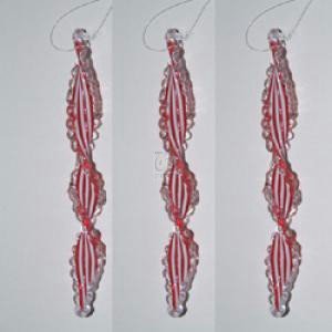 7" PLASTIC RED & WHITE TWISTED ICICLE ORNAMENTS 3PC.