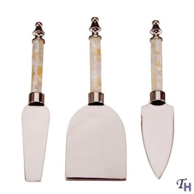 MOTHER OF PEARL ROUND HANDLE 3 PIECE CHEESE SERVER SET