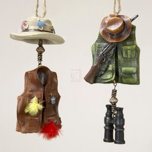 The Detailed Description of 4" RESIN HUNTING & FISHING VEST ORNAMENTS, SET OF 2 ASSORTED - Christmas Ornament