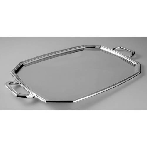 SILVER OCTAGON SERVING PLATTER TRAY WITH HANDLES