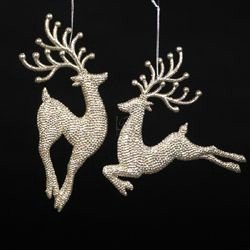 7"ACRYLIC CHAMPAIGN GOLD DIAMOND REINDEER ORNAMENT 2/ASSTD.