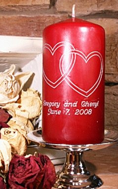 Gift Candles are a unique bridal party gift. They can also be used as centerpieces to decorate your reception tables. Our candles are hand made to order to your specifications and can be with your names, date and one line of verse, such as "Forever and Always." Dripless, Smokeless & Long-Burning Engraved Candles - No Stickers or Transfers 100% Cotton Wicks - No Lead Handmade to Order in the USA Size: Candle: 3" wide x 6" high Candle Colors: White,Ivory, Hunter Green, Navy Blue, Scarlet Red, Deep Purple, Burgundy, Black Paint Colors: Silver or Gold
